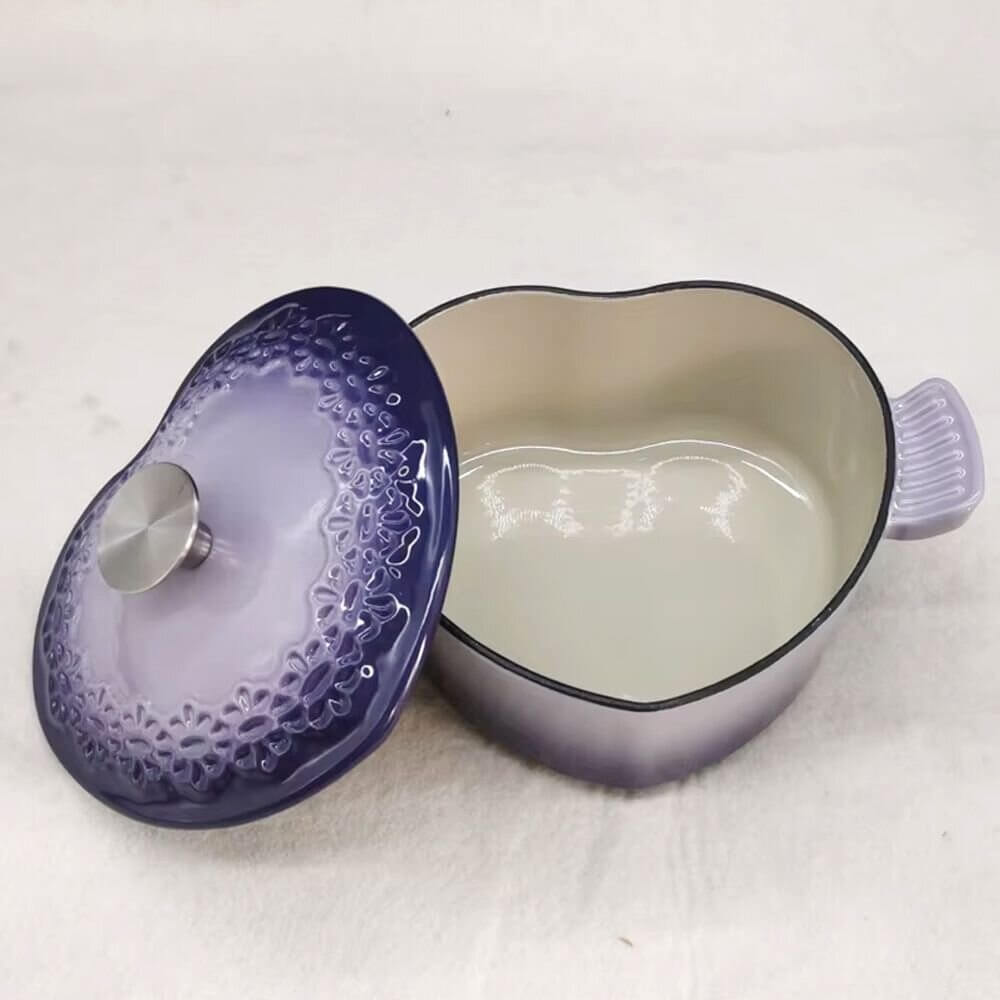 The 20cm Enamel Cast Iron Casserole Heart Shaped Pot is not just a functional cooking tool, but a beautiful addition to your kitchen. With its even heat distribution, superior heat retention, and easy-to-clean non-stick enamel interior, this pot is perfect for preparing a variety of dishes, from soups and stews to casseroles and baked goods. The heart-shaped design and vibrant colors make it an ideal choice for those looking to add a bit of style to their cooking. Whether you’re preparing a family meal or entertaining guests, this versatile pot ensures your food looks as good as it tastes, while its durable construction guarantees long-lasting use.